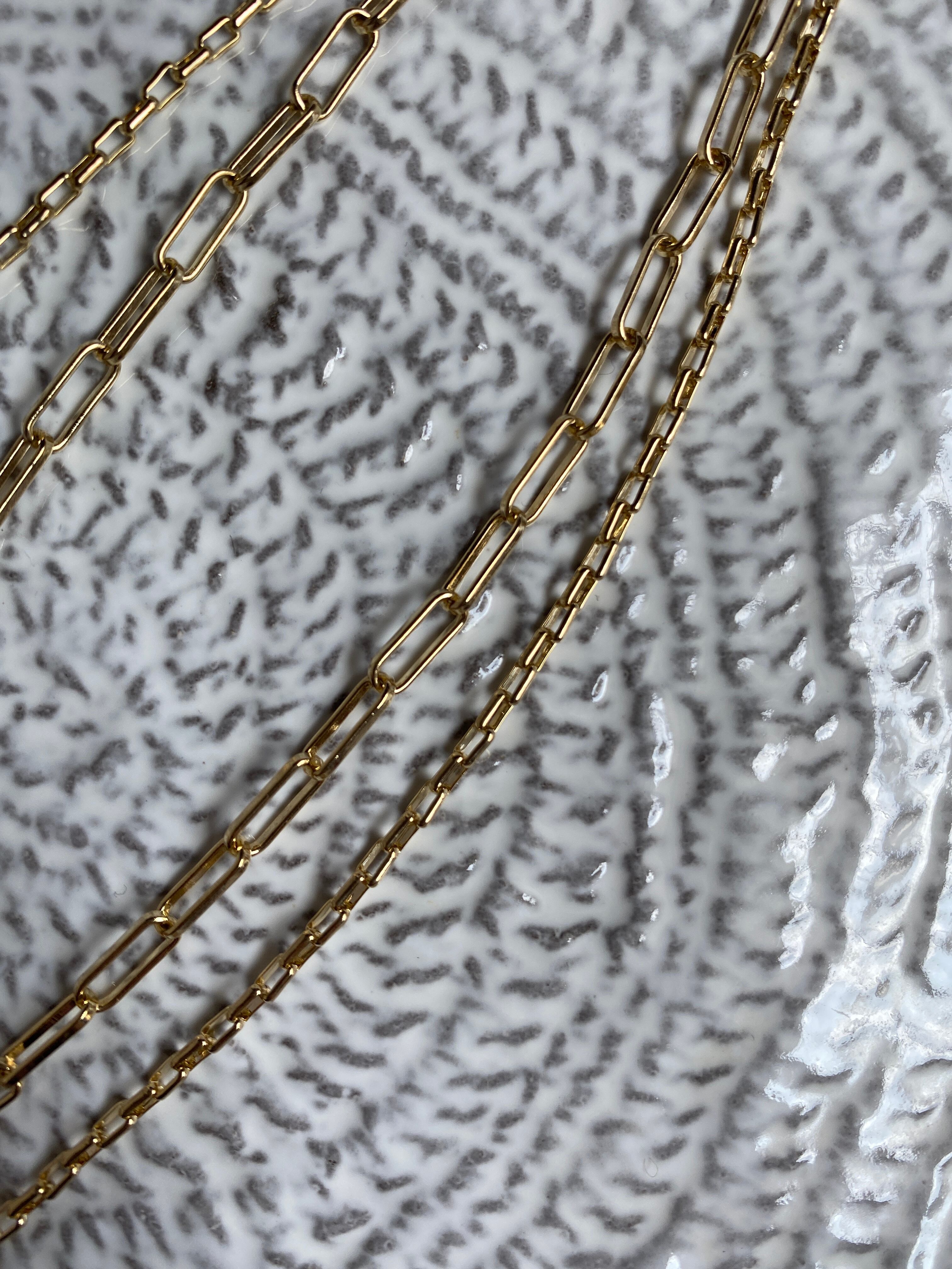 アシメトリーなダブルチェーンのデザインは存在感もあり、