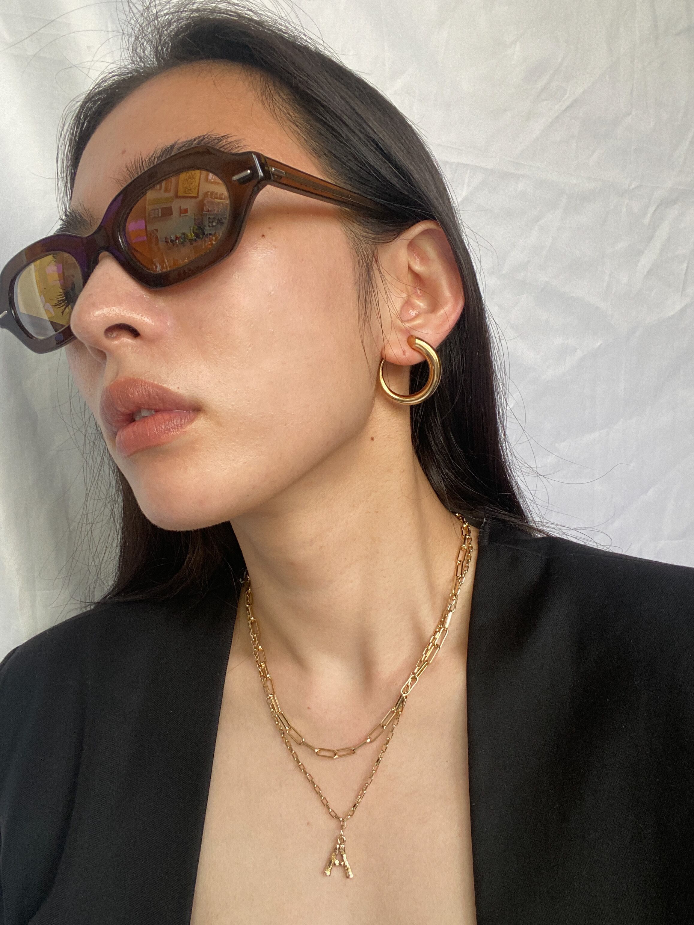 アシメトリーなダブルチェーンのデザインは存在感もあり、