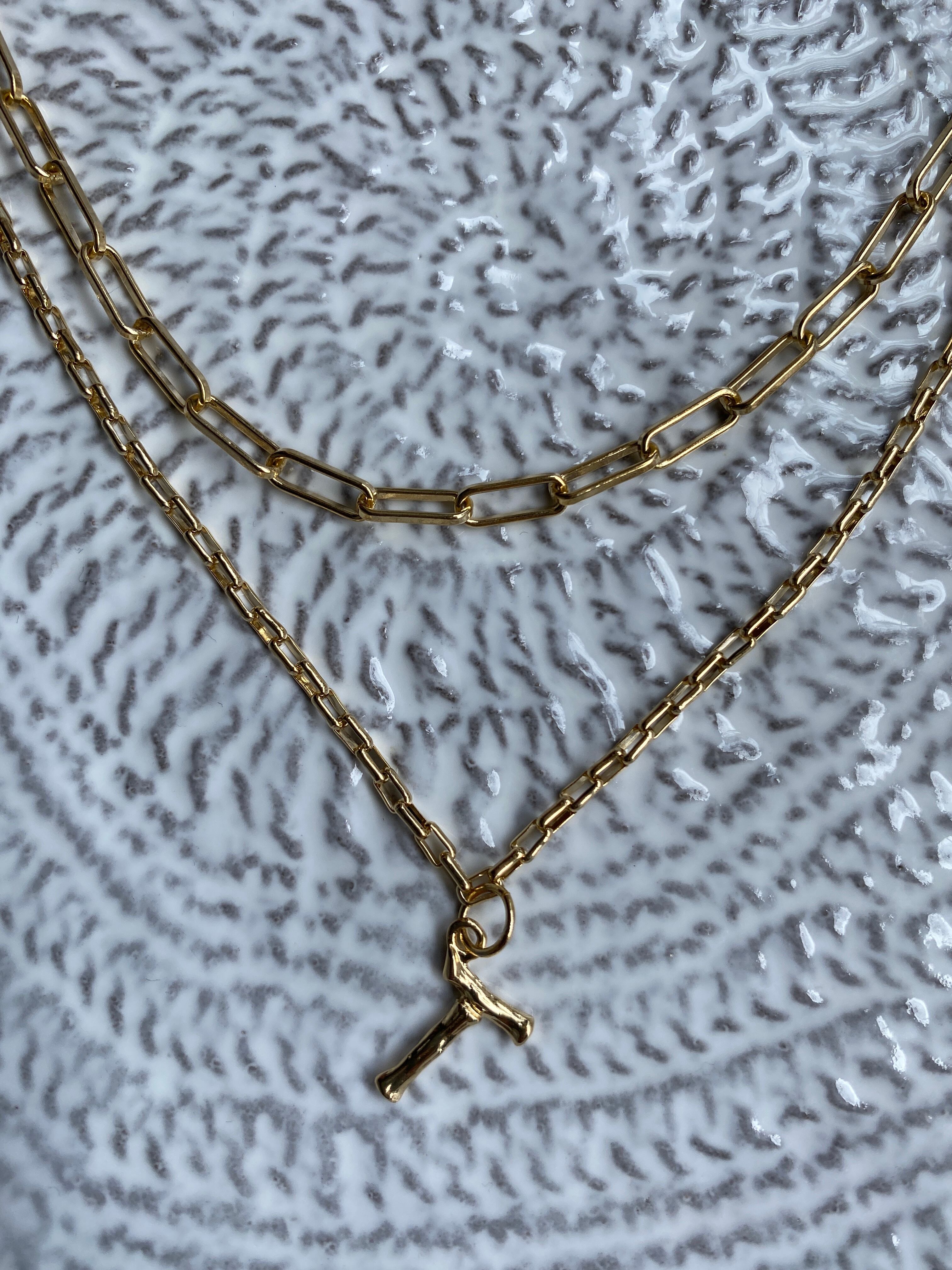 アシメトリーなダブルチェーンのデザインは存在感もあり、