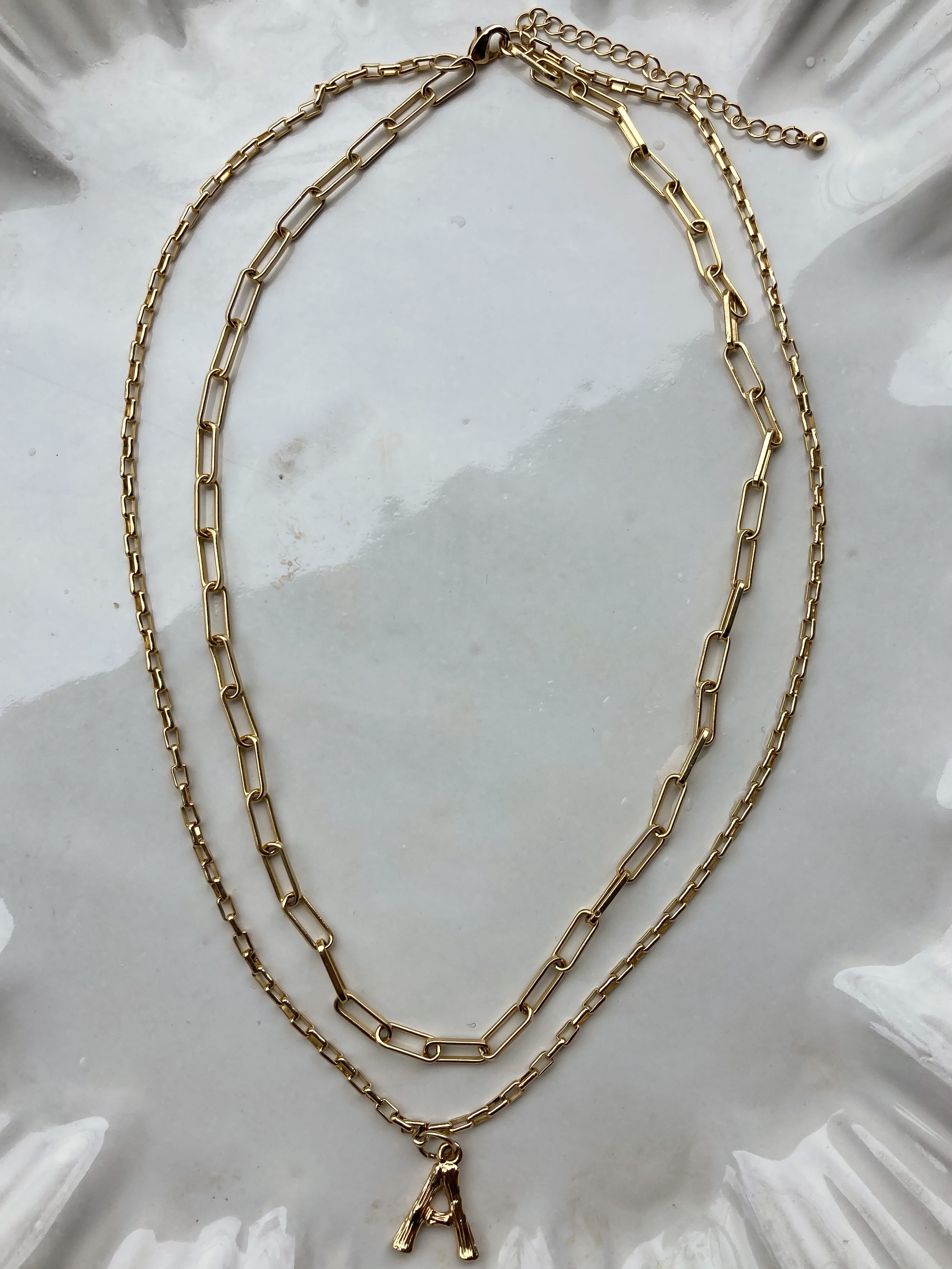 ダブルチェーンイニシャルネックレス<Y>